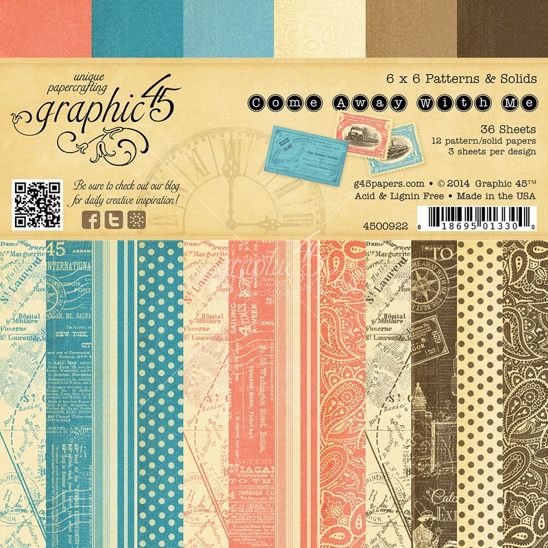 Graphic 45 Come Away Patterns Solids Paper Crafting Pad, 6 by 6-Inch