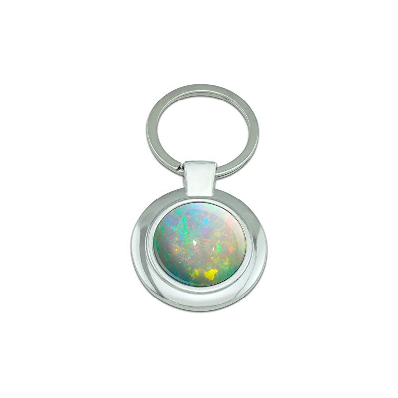 Graphics and More Opal October Birthstone (Image Only) Classy Round Chrome Plated Metal Keychain