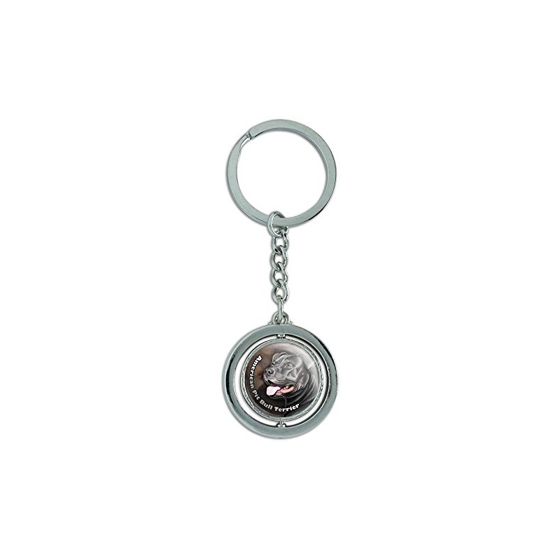 GRAPHICS & MORE American Pit Bull Terrier Blue Nose Dog Spinning Round Metal Key Chain Keychain Ring