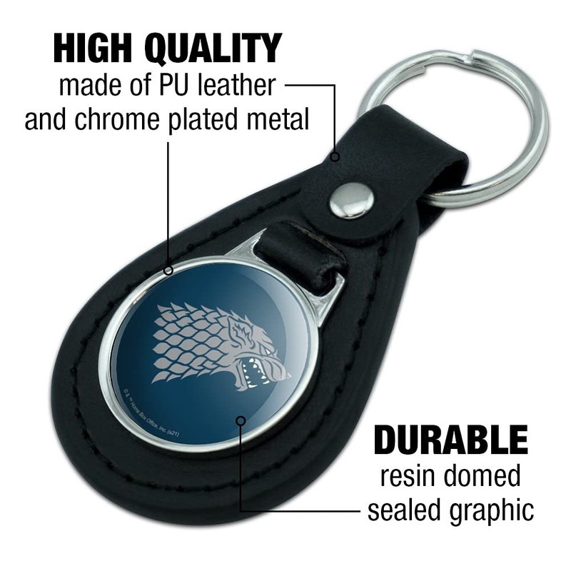 GRAPHICS & MORE Black Leather Game of Thrones Stark Sigil Keychain