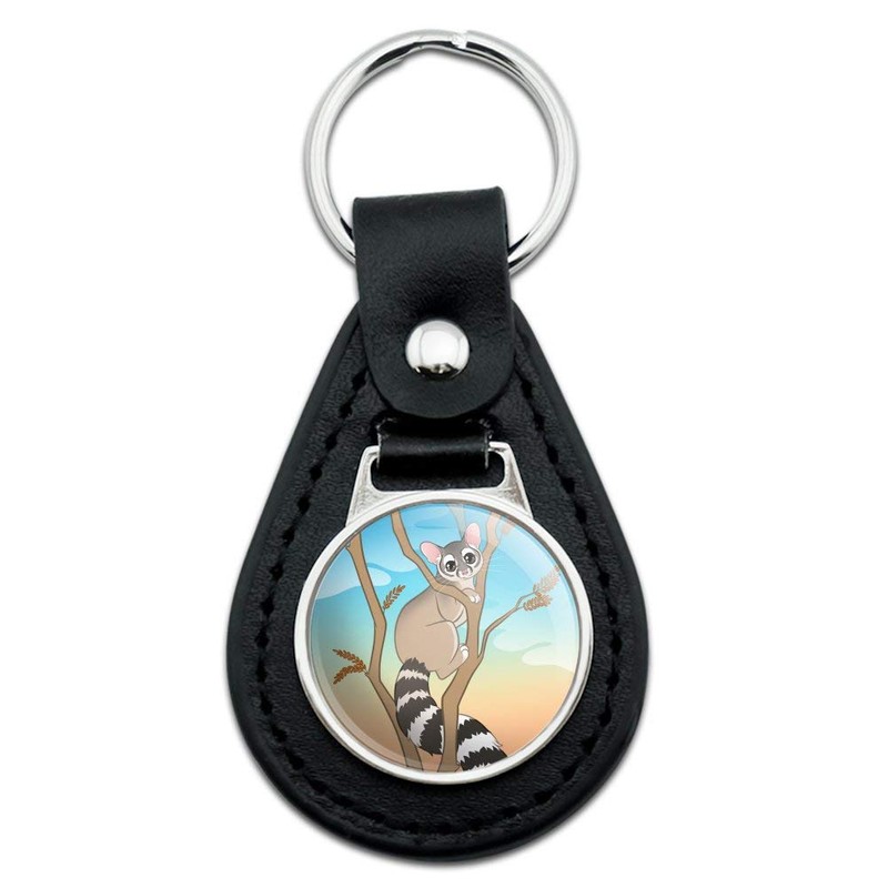 GRAPHICS & MORE Black Leather Ring-tailed Cat Keychain