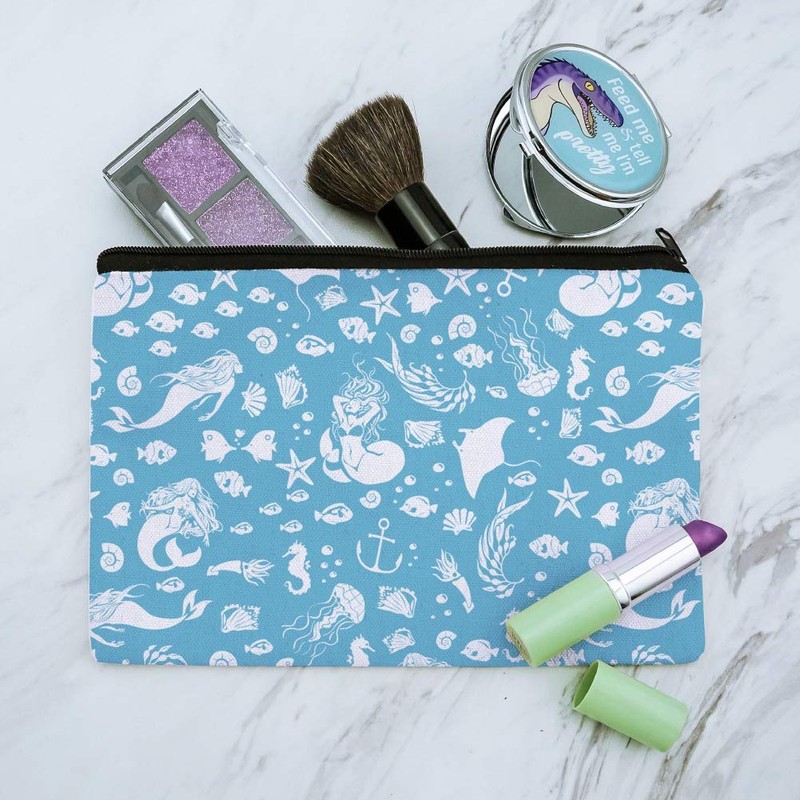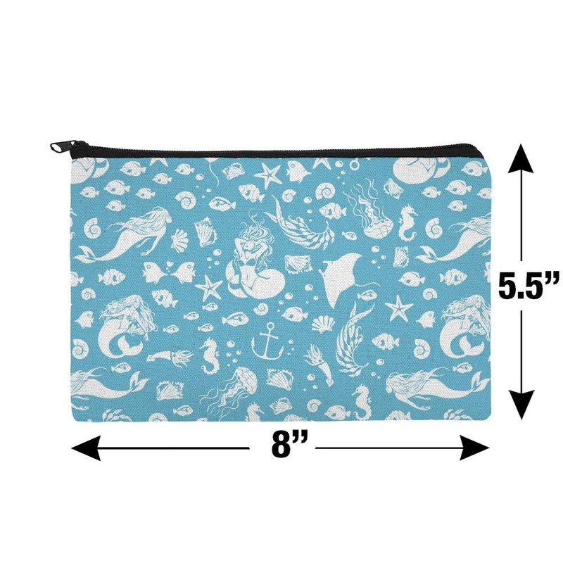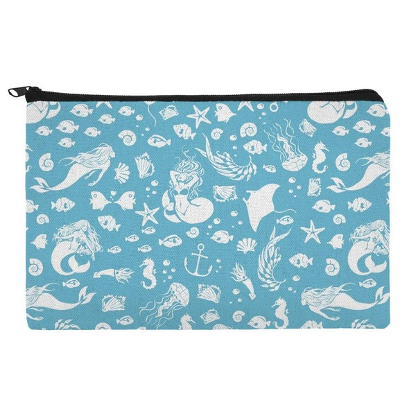 GRAPHICS & MORE Blue Mermaid Pattern with Seashells Fish Manta Rays Ocean Makeup Cosmetic Bag Organizer Pouch