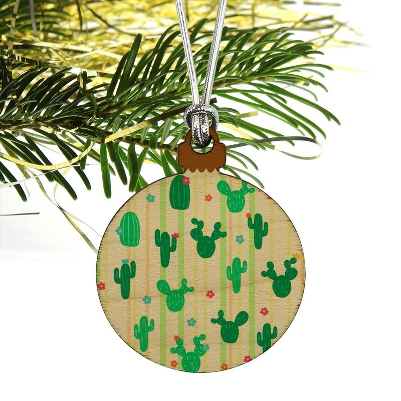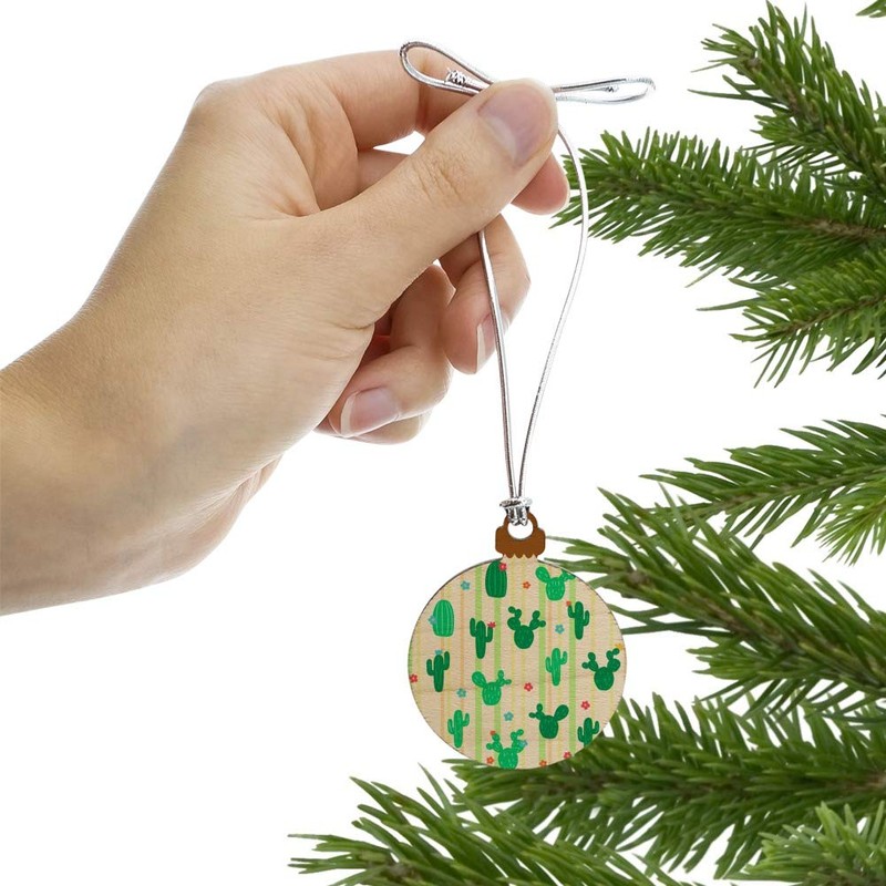 GRAPHICS & MORE Cute Cactus with Flowers Pattern Mini Small Tiny Wood Christmas Tree Holiday Ornament