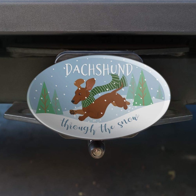 GRAPHICS & MORE Dachshund Dashing Through The Snow Winter Christmas Oval Tow Trailer Hitch Cover Plug Insert