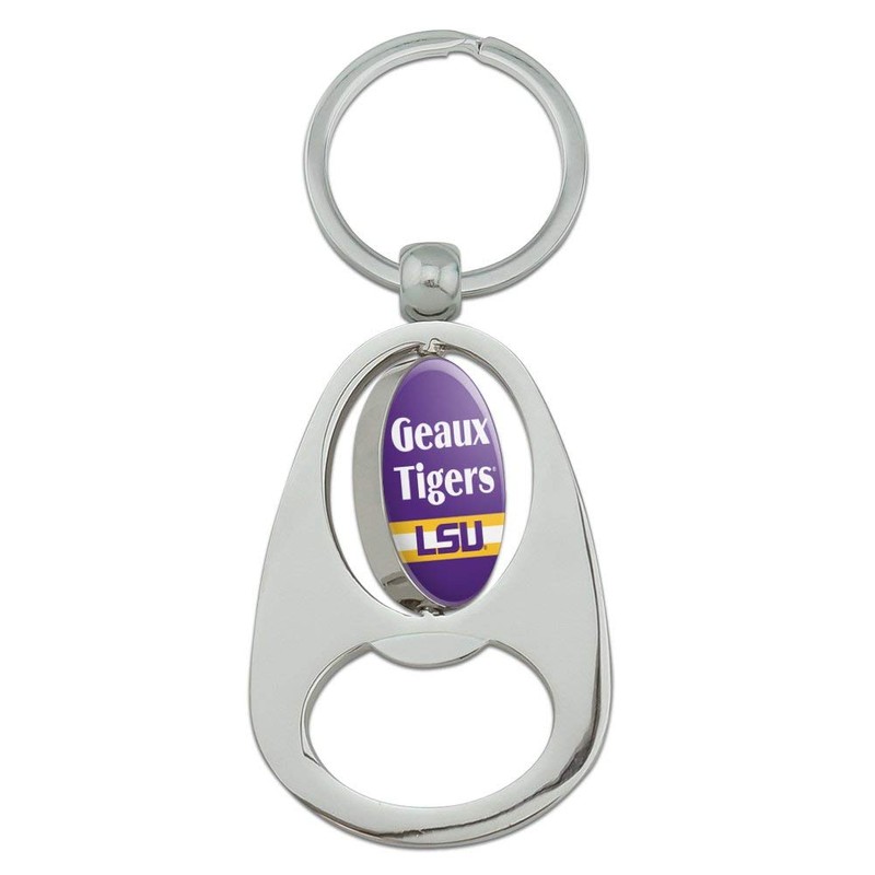 GRAPHICS & MORE Geaux Tigers LSU Keychain Chrome Metal Spinning Oval Bottle Opener