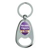 - SPINNING BOTTLE OPENER KEYCHAIN: Be prepared for refreshment anytime with our oval resin-topped keychain. Pocket-sized for convenience, this keychain easily stows away in purse, pocketbook, or evening bag. The easy-to-spot image makes it perfect for keeping track of that special set of keys.