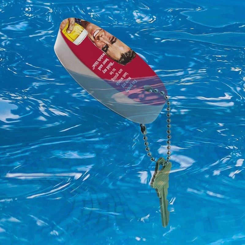 - QUALITY MATERIAL: Our durable lightweight float is crafted from soft polyurethane and will comfortably float four full-size keys, or about 1.2 ounces. The featured design shown is printed on one side, and the backside is left white. Approximately 3.2" (8.1cm) x 1.4" (3.6cm) x 0.8".(2.0cm) in size.