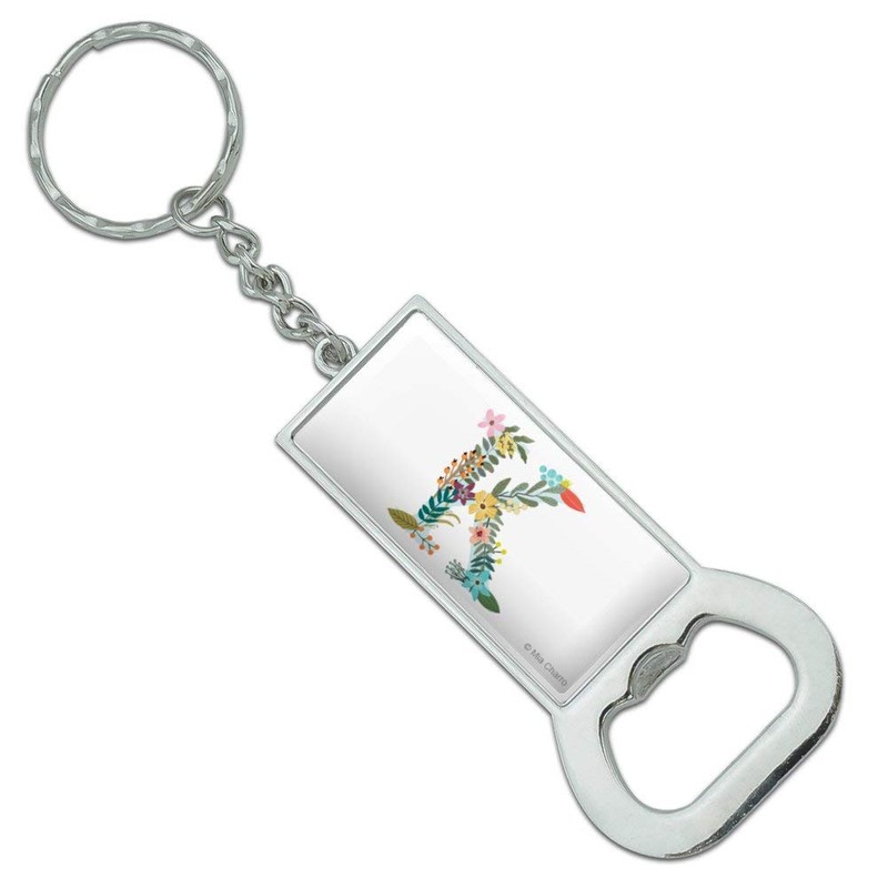GRAPHICS & MORE Letter K Floral Monogram Initial Keychain Rectangle Chrome Plated Metal Bottle Cap Opener