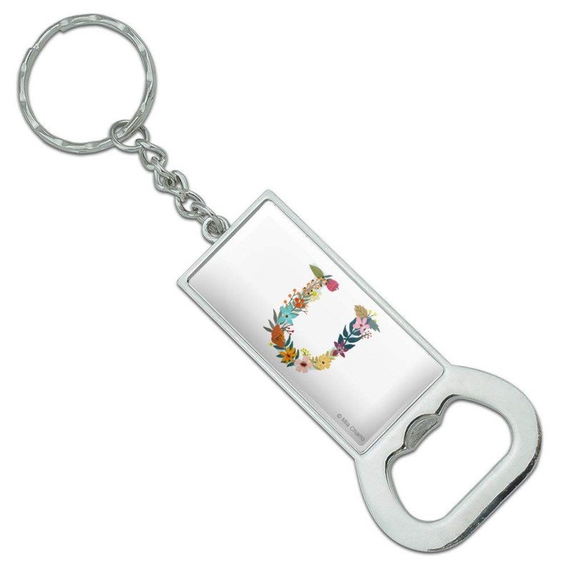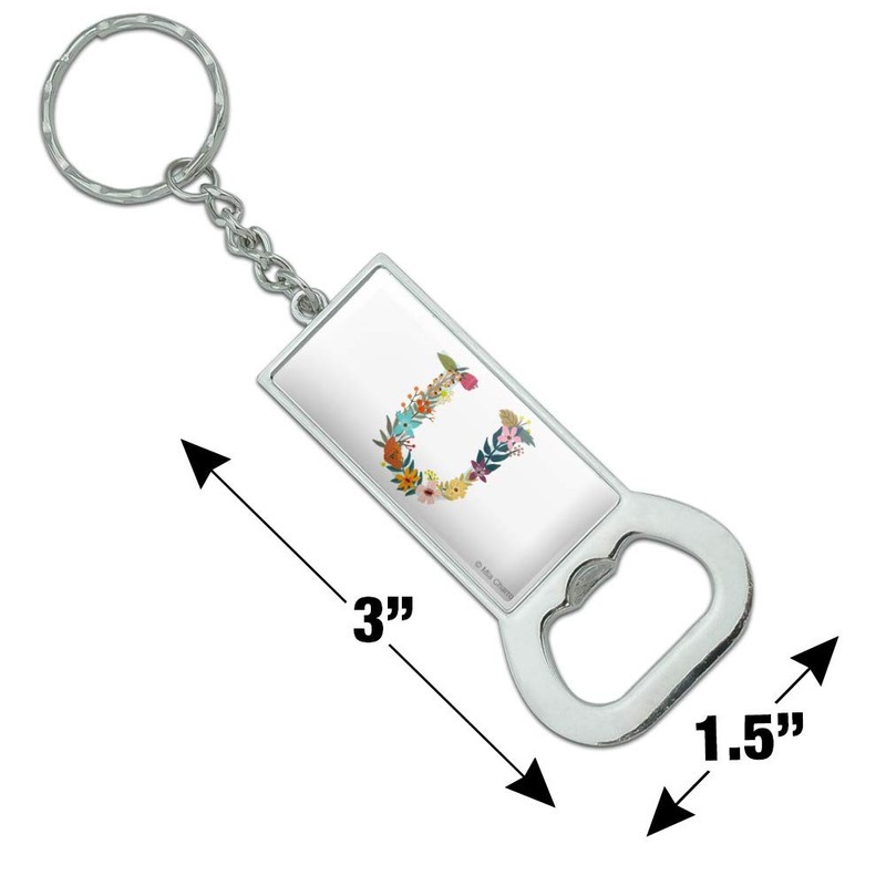 GRAPHICS & MORE Letter U Floral Monogram Initial Keychain Rectangle Chrome Plated Metal Bottle Cap Opener