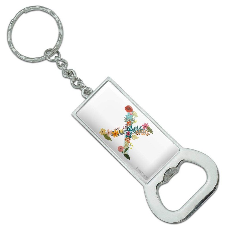 GRAPHICS & MORE Letter X Floral Monogram Initial Keychain Rectangle Chrome Plated Metal Bottle Cap Opener