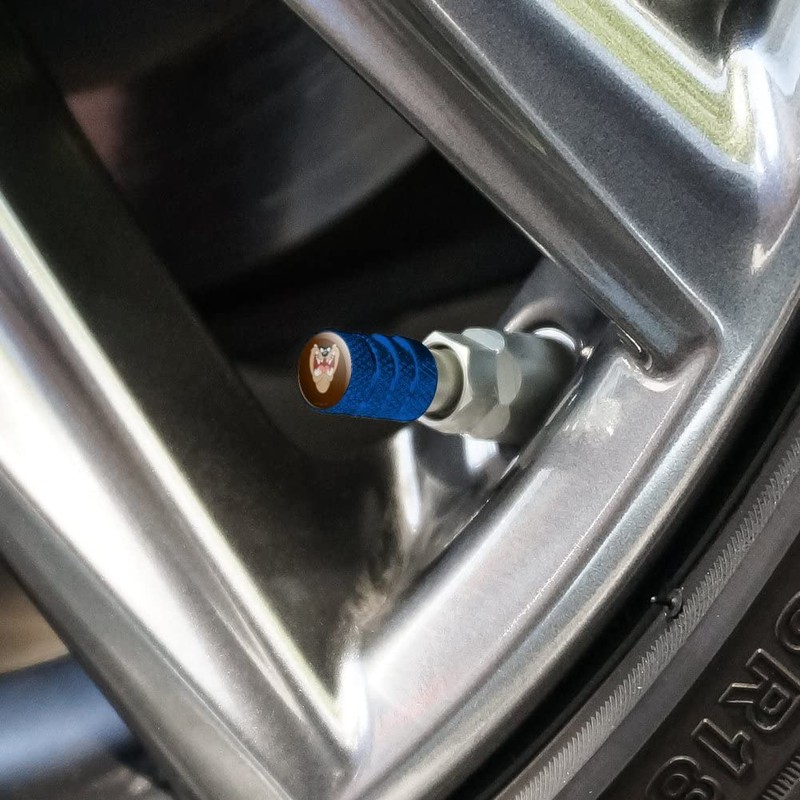 - VALVE STEM CAPS: Put rubber to the road in style. Our high-quality blue aluminum valve stem caps will add some eye-catching bling to your ride! These resin-topped air valve covers help keep your tires inflated at the proper level on cars, trucks, vans, RV's, off-road vehicles, and more.
