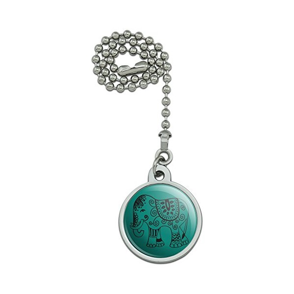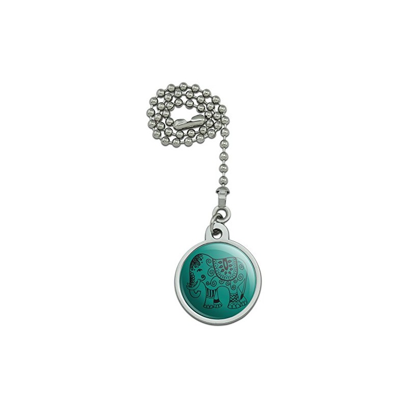 GRAPHICS & MORE Painted Elephant India Black on Teal Ceiling Fan and Light Pull Chain