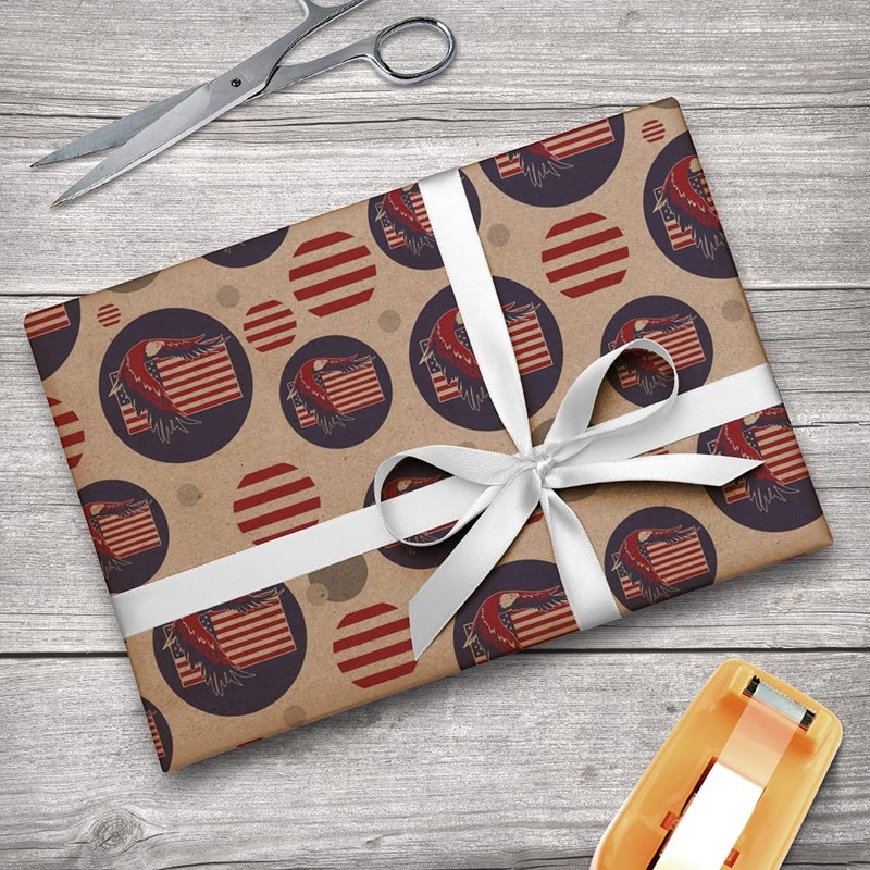 GRAPHICS & MORE Patriotic Red White And Blue American Bald Eagle Over USA Flag Premium Kraft Gift Wrap Wrapping Paper Roll