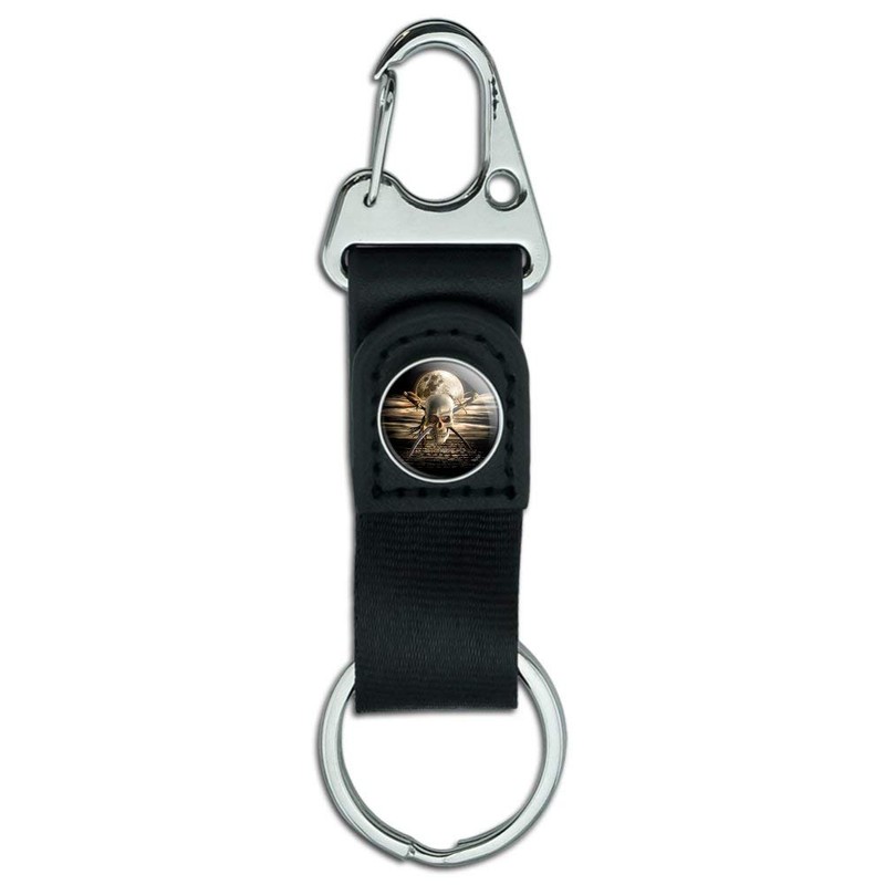 GRAPHICS & MORE Pirate Skull Crossed Swords Cutlasses Ocean Moon Belt Clip-On Carabiner Leather Fabric Keychain Key Ring