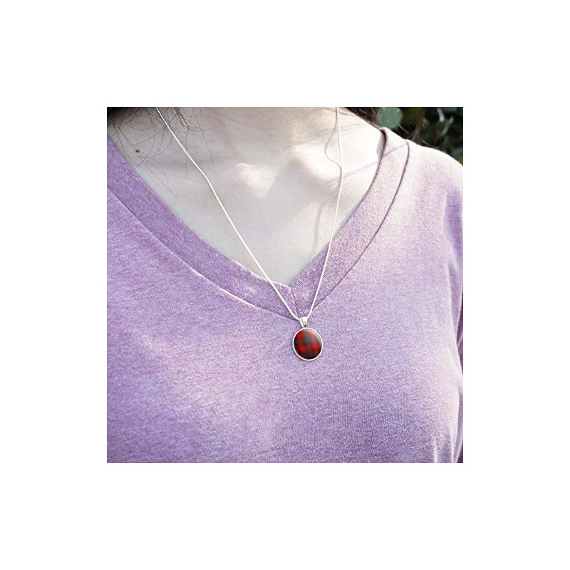 GRAPHICS & MORE Plaid Red Gray Grey Pattern 0.75" Pendant with Sterling Silver Plated Chain