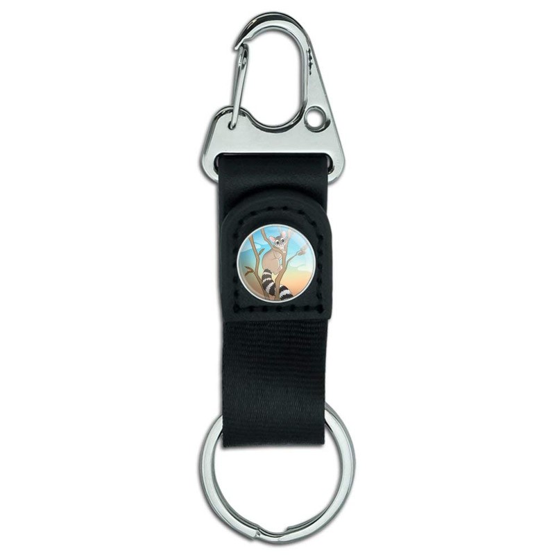 GRAPHICS & MORE Ring-tailed Cat Keychain with Leather Fabric Belt Clip-On Carabiner