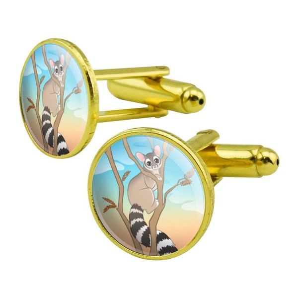 GRAPHICS & MORE Ring-Tailed Cat Round Cufflink Set Gold Color