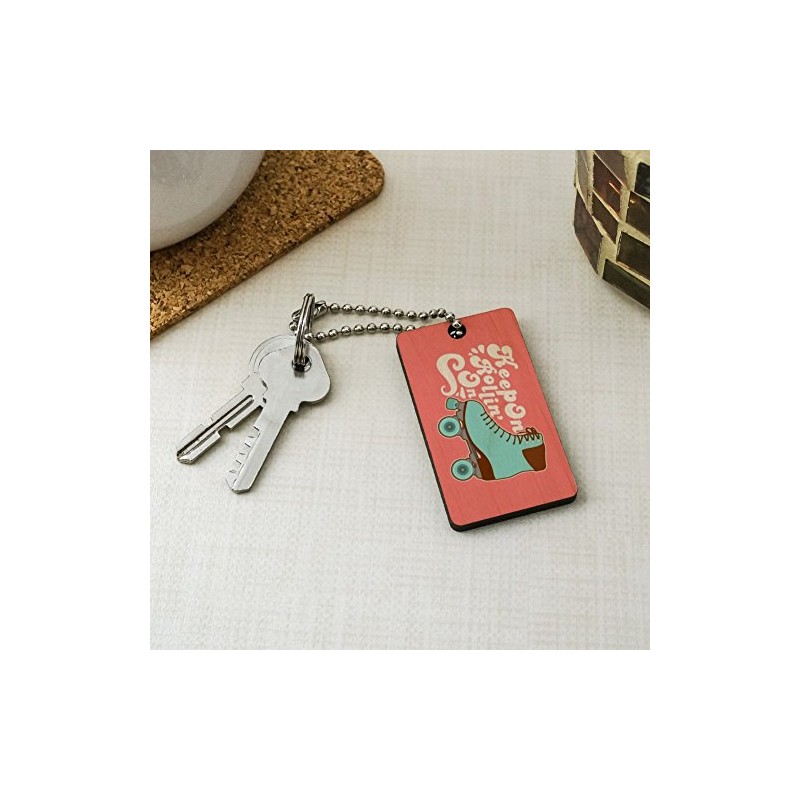 GRAPHICS & MORE Roller Skates Derby Keep On Rolling Skating Wood Wooden Rectangle Keychain Key Ring