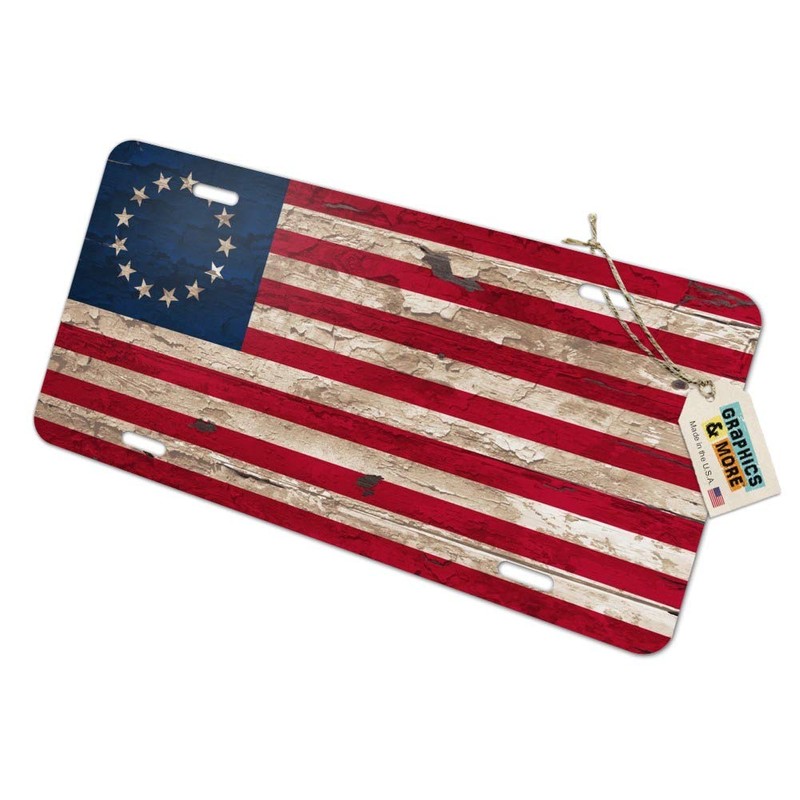 GRAPHICS & MORE Rustic Betsy Ross 1776 Distressed American Flag Novelty Metal Vanity Tag License Plate