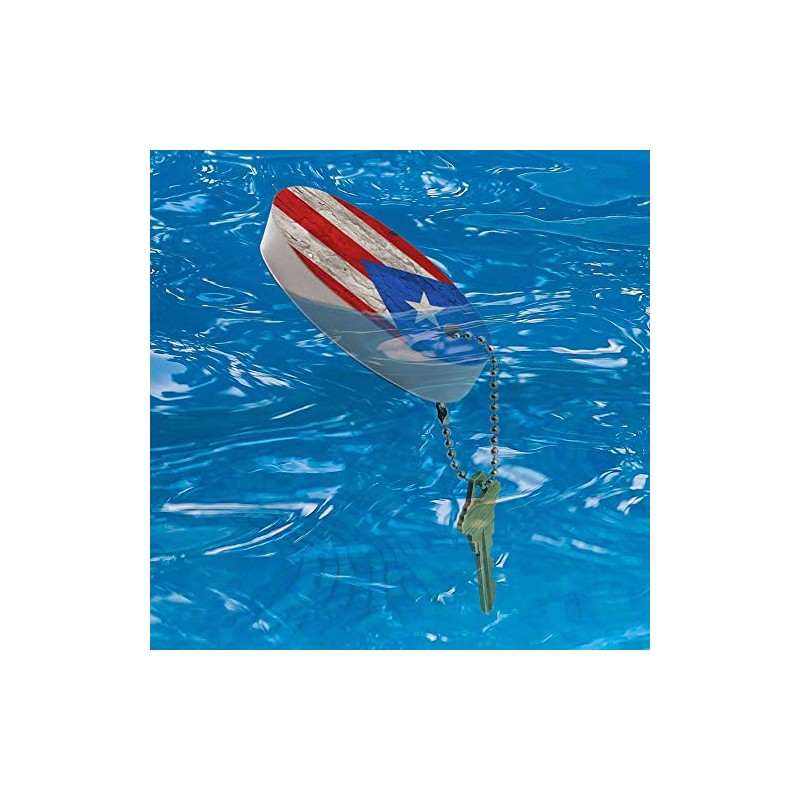 Rustic Distressed Puerto Rico Flag Wood Look floating keychain will help keep you from losing your keys at sea! It's the perfect accessory for all your aquatic adventures. The keychain will comfortably float four full-size keys, or about 1.2 ounces.