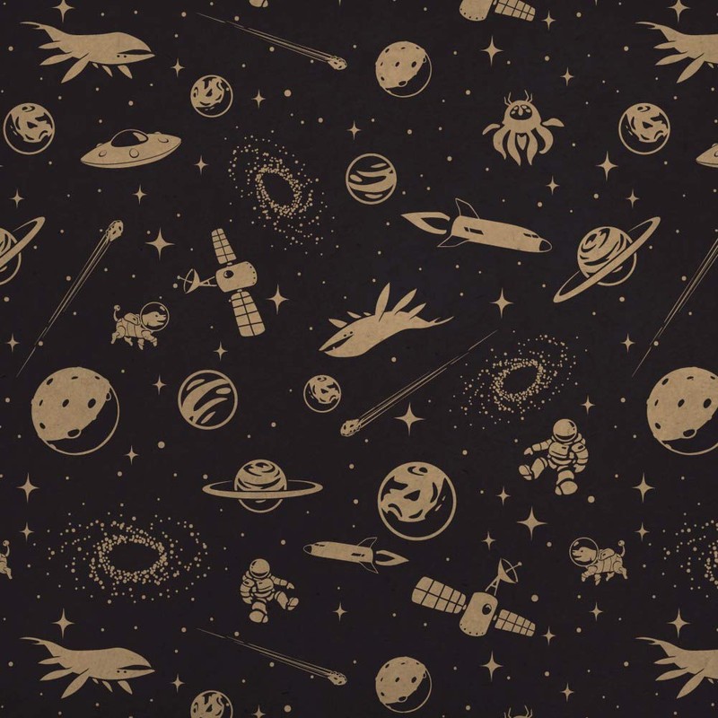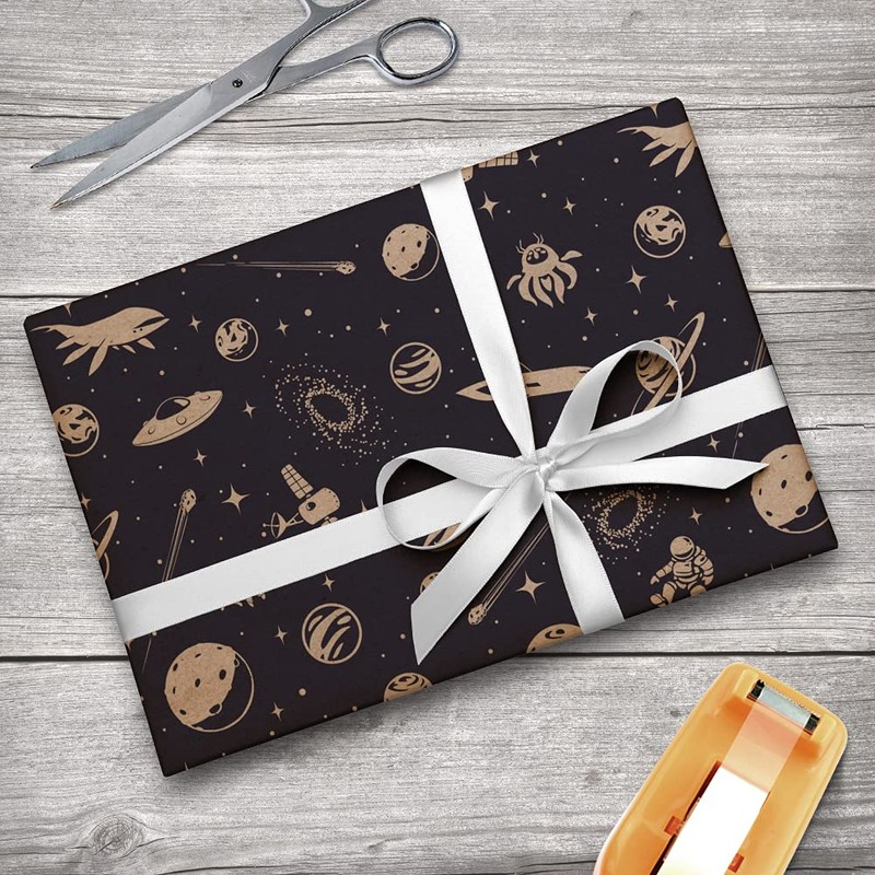 GRAPHICS & MORE Space Pattern with Stars Planets Aliens Astronauts Spaceships Dogs Premium Kraft Roll Gift Wrap Wrapping Paper
