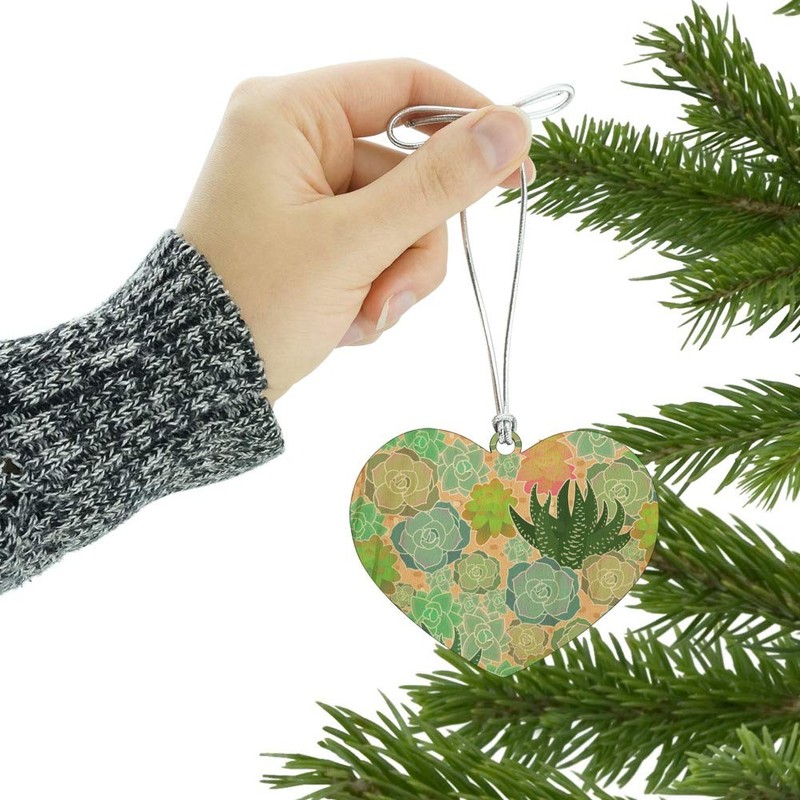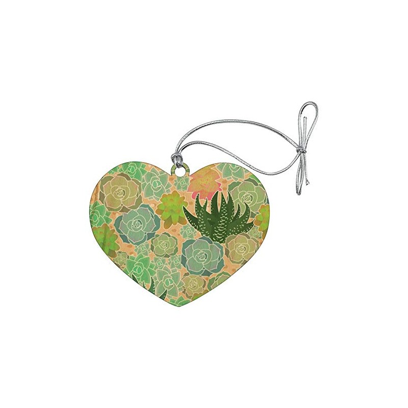 GRAPHICS & MORE Succulent Cactus Aloe Plants Pattern Heart Love Wood Christmas Tree Holiday Ornament