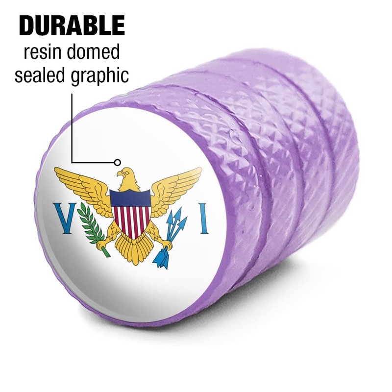 These Virgin Islands US Territory Flag valve stem caps are high-quality unique and will add a fun and a stylish look to your rims! Each valve stem cap is approximately 0.55" (14mm) in height and includes an inserted rubber o-ring for an air-tight fit.