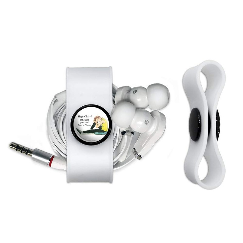 GRAPHICS & MORE Yoga Class I Thought You Said Pour a Glass Funny Humor Headphone Earbud Cord Wrap - Charging Cable Manager - Wire Organizer Set of 2