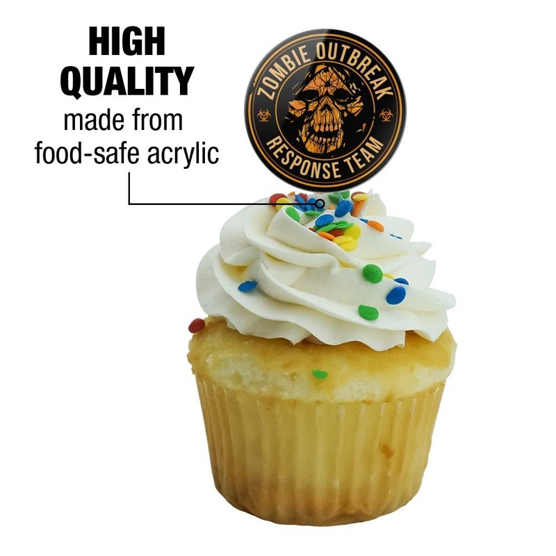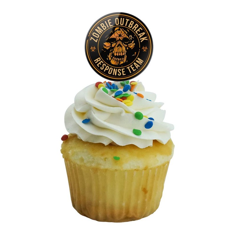 GRAPHICS & MORE Zombie Outbreak Response Team Skull Yellow Circle Cupcake Picks Toppers Decoration Set of 6