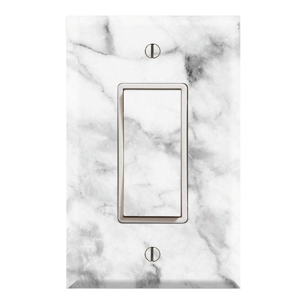 Graphics Wallplates - White Grey Marble Background Print - Single Rocker/GFCI Wall Plate Cover