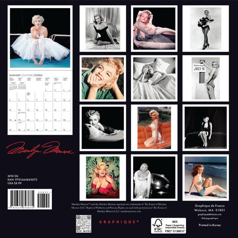 Graphique 2026 Marilyn Monroe Mini Wall Calendar | 7” x 7” | Thick Paper | Home & Office Organizer | Large Monthly Grid | 3 Languages & Marked Holidays | 4 Month Preview Page for 2027