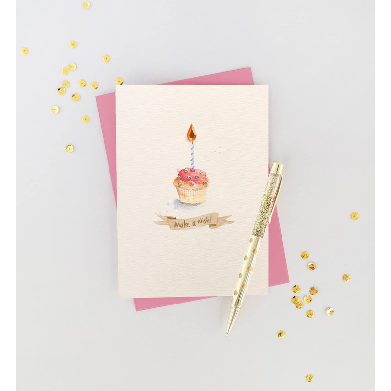 - HAPPY BIRTHDAY Let someone special know you are thinking of them with this card featuring gold foil accents and multiple crystals atop an artistically rendered cupcake. Inside message: Hope you have a wonderful, happy birthday now and forever. Send cards from the heart, send cards from Graphique.