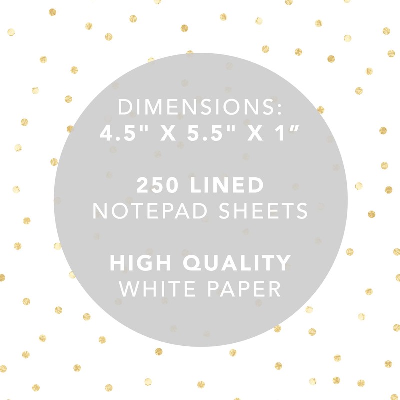 - This fun 4.5" x 5.5" x 1" jotter notepad by Graphique shows off the company's ability to merge practicality with savvy design. The pad's so pretty you won't want to use up the pages!