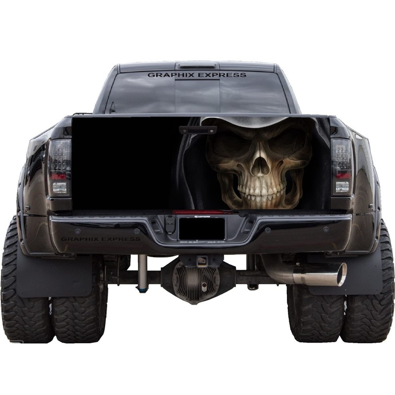GRAPHIX EXPRESS Truck Tailgate Decal (T05 Grim Reaper Skull) - Black Laminated Rectangular Sheet for Pickup Trucks