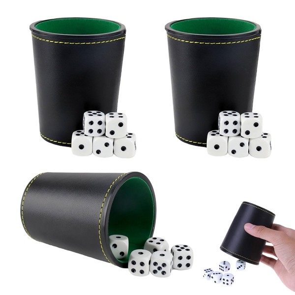 Graplan Dice Cup Set Including 3 Leather Dice Cups and 15 Dice, Puzzle Cup, Leather Dice Cup with Dice