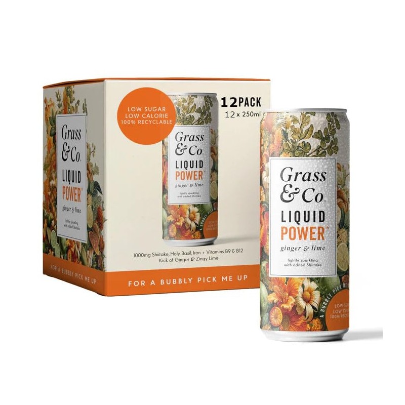 Grass & Co | POWER Shiitake Mushroom | Enhances Energy Levels & Well-being | Shiitake Extract, Holy Basil, Iron, Vitamins B9 & B12 (12 x 250ml, POWER)