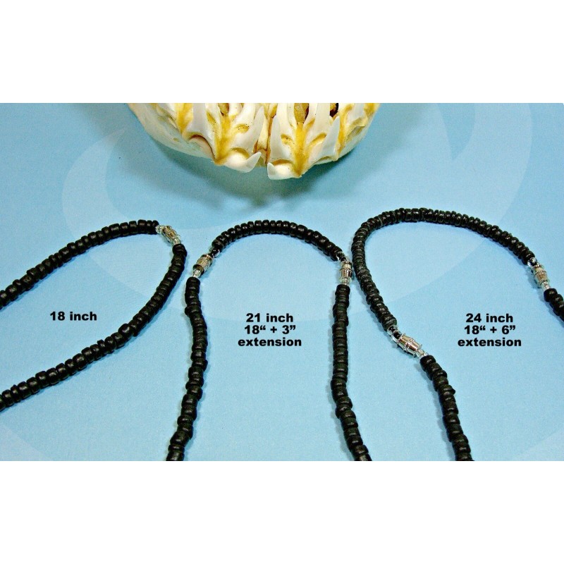 Choose 19 Inches length or 22 and 25 Inches by attaching a screw on coconut bead extender. See pictures