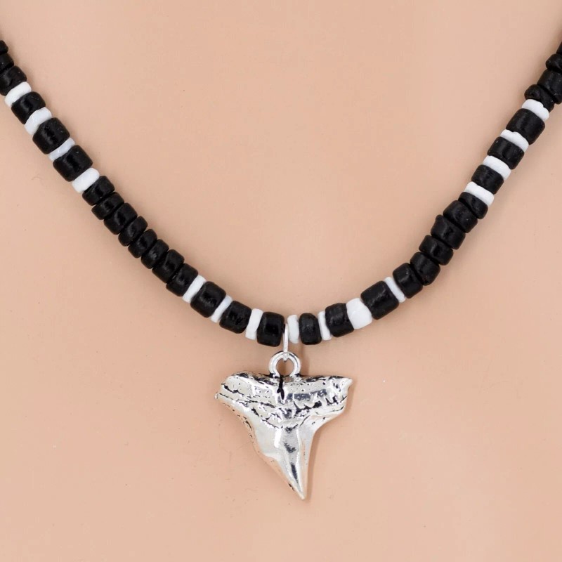 with Silver Plated Alloy 3 Dimensional Shark Tooth Pendant