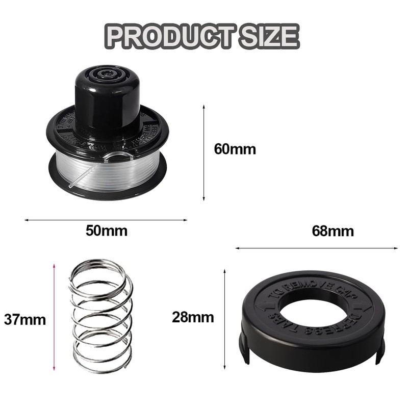 Grass trimmer spool, compatible with Black + DEC tondeuse gl250, gl310, gl360, includes 3 replacement trimmer spools, 1 replacement spool cover and 1 spare spring