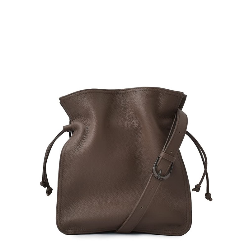 - A genuine leather shoulder bag with a loose drawstring closure. We use plenty of high quality shrunken leather with a trendy drawstring design. Although it is small, it can also be used to store a long wallet. A trendy square shape drawstring adds an accent to your adult outfit. You can enjoy a simple and elegant style that can be worn by adult women without unnecessary decorations