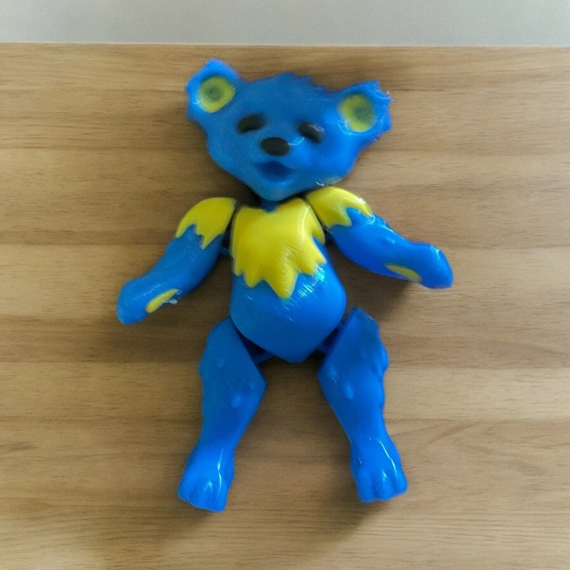 This 3D printed articulated bear is a must-have for any Grateful Dead fan. With its intricate details and vibrant colors, it's a perfect addition to any music memorabilia collection. This bear is designed to look like the iconic Grateful Dead logo and is perfect for displaying on a shelf or desk.