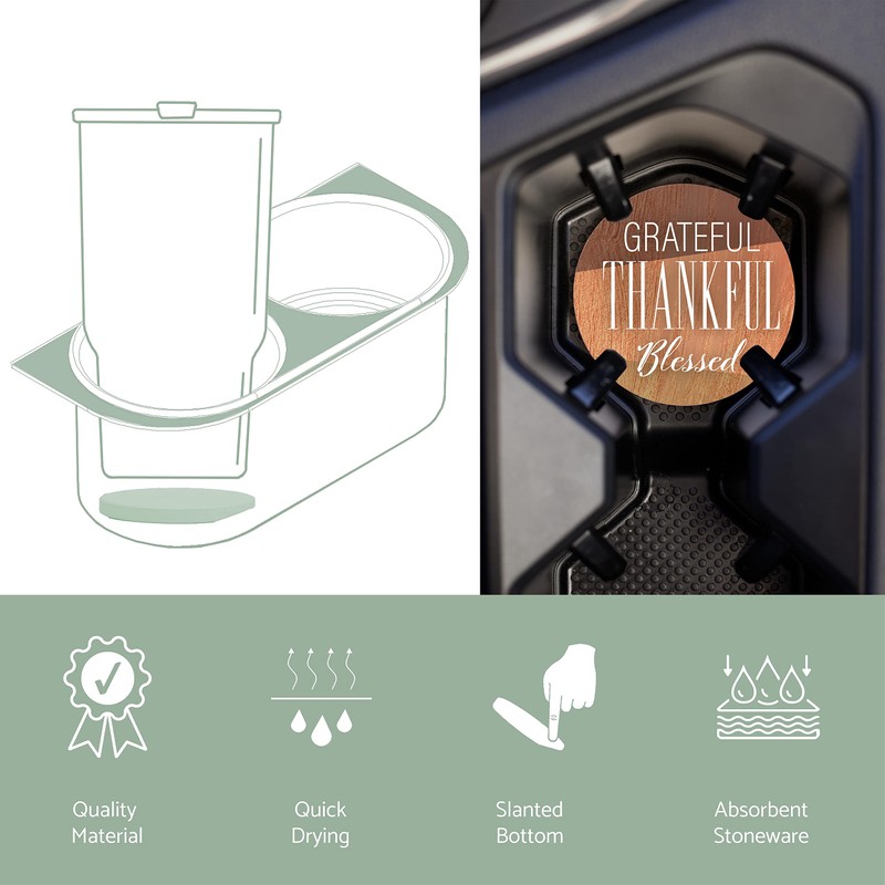 - Coasters are made of absorbent ceramic with a slanted edge on the bottom, allowing for easy removal from the vehicle for cleaning