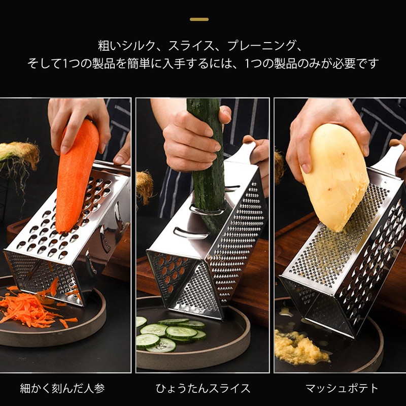 - (4 in 1) This 4-sided type has different shapes of graters, so you can grate cheese to your preferred shape according to your recipe. This is a multi-slicer that can be used to cook a variety of other dishes. It boasts a variety of functions for many occasions