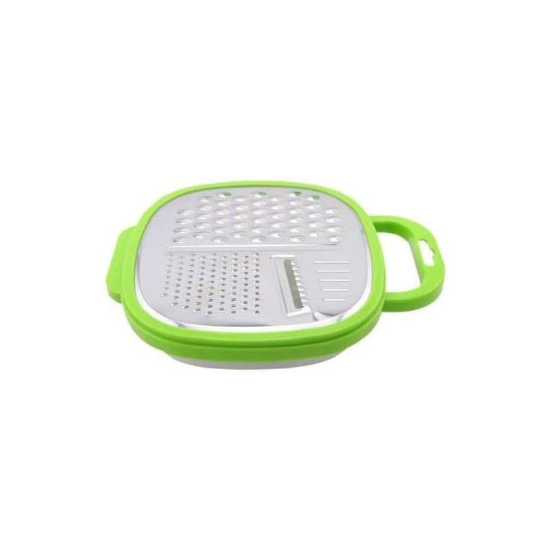 - Stop struggling with straight or pyramid shaped graters! This flat grater fits atop the included storage container.