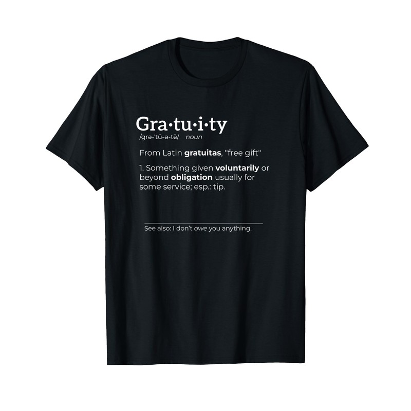 - Make a definitive statement against entitlement with our "Gratuity Definition" design. Wear your disdain for undeserved expectations! Shows the dictionary definition of a tip or gratuity.