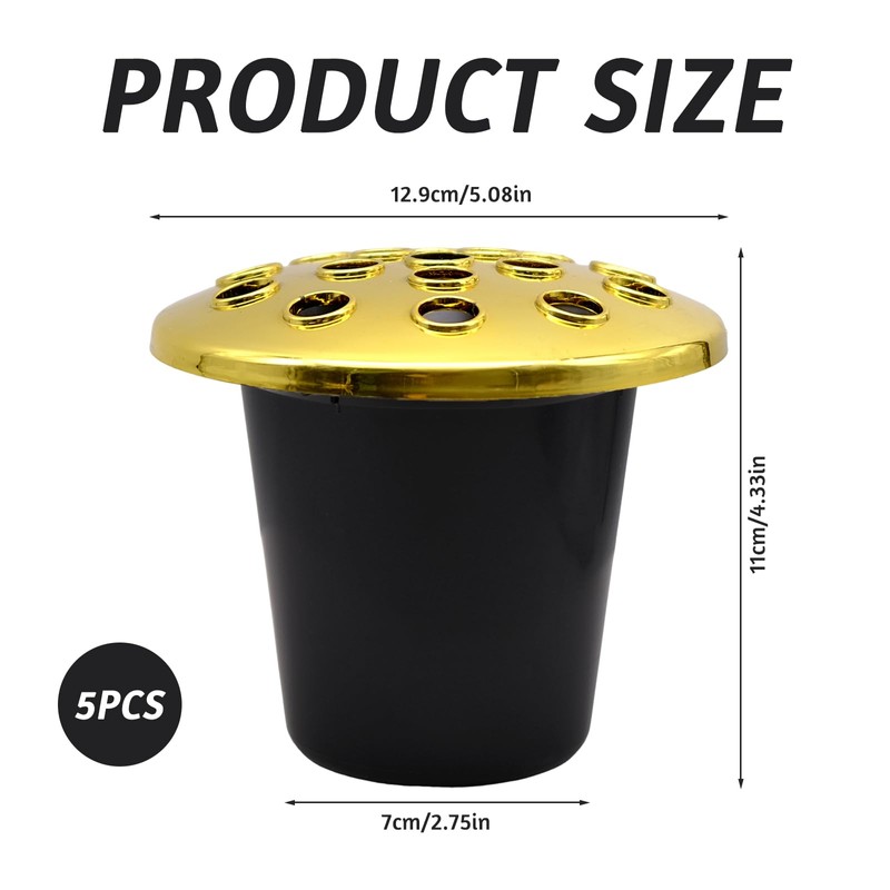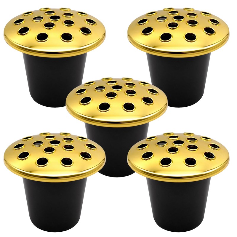 Grave Flower Holders with Golden lid pack of 5, Memorial Vases for Graves Strong Plastic Grave Flower Pots Insert in Grave-side, Grave Vase for Grave Decorations