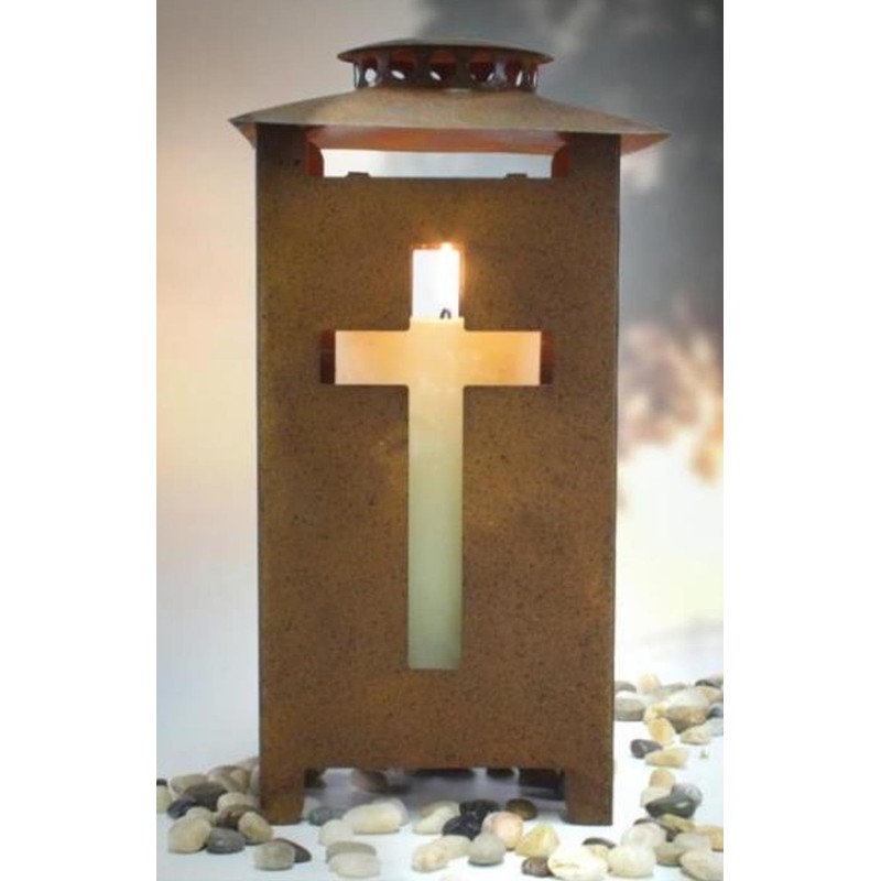 Grave Lantern Rust with Cross Light Design on Each Side Height 25 cm Pack of 1