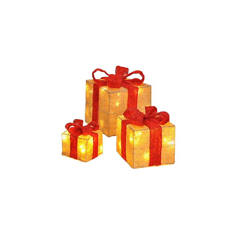 Gravidus Set of 3 Illuminated Gift Boxes, Christmas Decoration, Beige