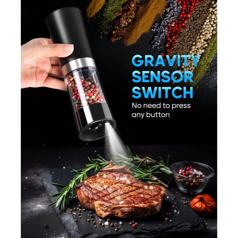 - Saves Your Hands With Gravity Electric Salt And Pepper Grinder Set: Say goodbye to the hassle of manual grinding! Simply flip the grinder upside down to enjoy freshly ground salt or pepper with ease. It saves your hands from grinding the crap outta pepper or salt. The safety button design ensures you don't have to worry about the grinder accidentally activating.