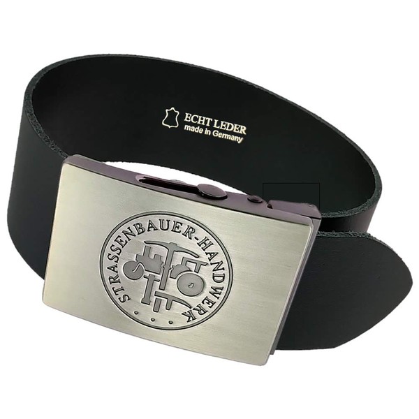 GravurManufakturBerlin Trouser Belt with Craft and Guild Sign Leather Belt Nylon Belt 4 cm Wide One Length Can Be Shortened, Black leather, One size fits all